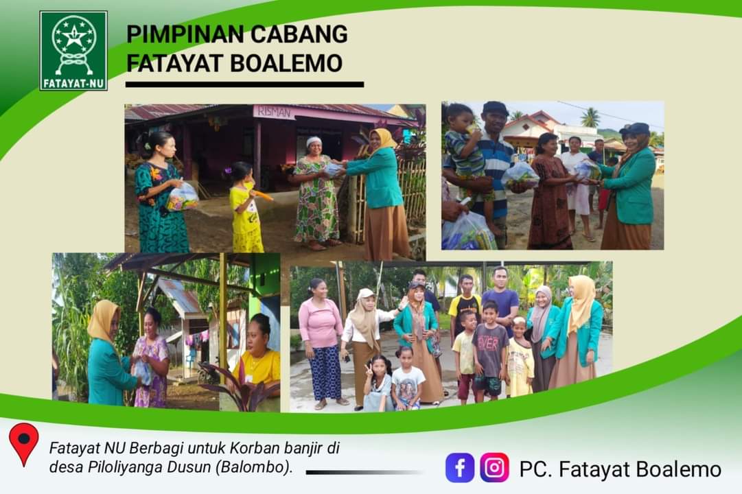 Siska Hasan ketua PC Fatayat NU Kabupaten Boalemo sigap dalam menyikapi bencana banjir yang dialami oleh sebagian warga Boalemo. Tak tinggal diam beliau mengkoordinir seluruh pengurus untuk bergerak mengumpulkan donasi untuk membantu korban banjir. Donasi bukan hanya dalam bentuk uang tapi juga pakaian layak pakai, bahan makanan, obat-obatan, perlengkapan tidur, popok bayi, dan lainnya.